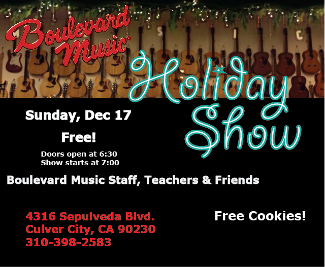 Online tickets sales close at 6pm the night of the show.  Any remaining tickets are for sale at Boulevard Music when doors open At 7:30pm unless noted otherwise.  Tickets may also be purchased in person at Blvd Music or by phone (310) 398-2583 using a major credit card.